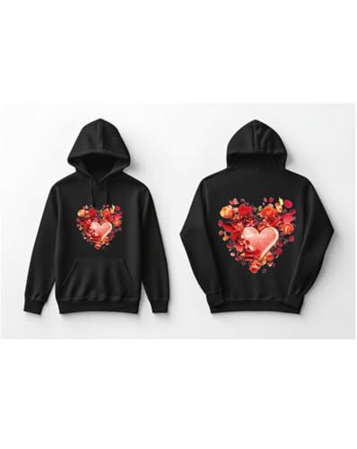 - هودي عيد الحب على شكل قلب ووردة (أسود) مقاس L