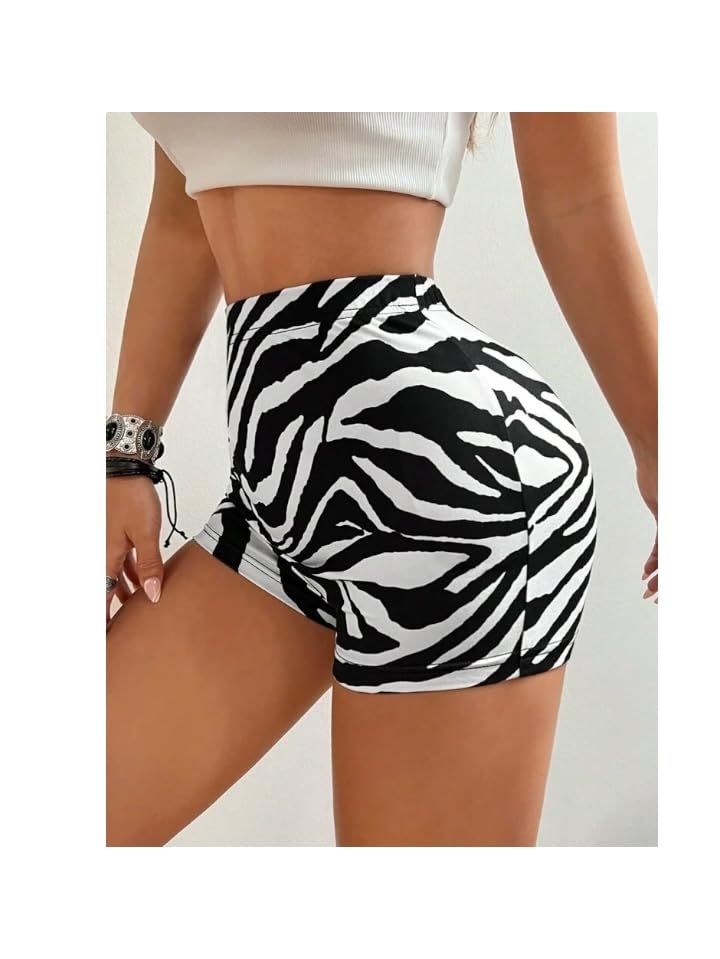 Generic - هوت شورت نسائي بطبعات عصرية – مقاس واحد يناسب من 50 إلى 85 كجم – شورت رياضي مريح ومشد للبطن والخصر – تصميم جريء وأنيق للمنزل أو التمرين (تايجر, مقاس واحد)