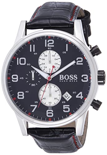 Hugo Boss - ساعة يد أنالوج بحركة كوارتز مع سوار جلد للرجال باللون الأسود من هوجو بوس، موديل 1512631