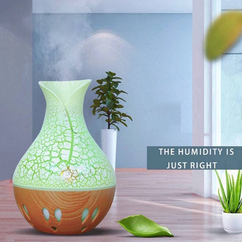 Generic - موزع زيوت عطرية وجهاز ترطيب هواء بالموجات فوق الصوتية وشكل فازة و7 مصابيح LED