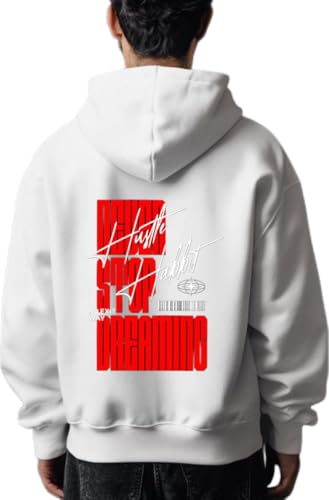 Generic - Hustle Stop Dreaming كنزة ذات قبعة ظهر أبيض