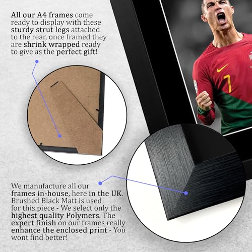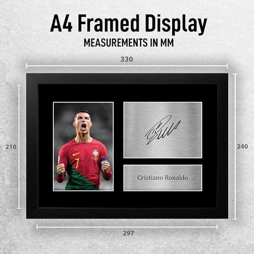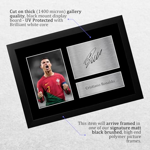 - ✯ هدية سيحبونها بالتأكيد - سجل هدفًا عالميًا مع هذا البرواز المطبوع والموقع لأحد أشهر أساطير كرة القدم في العالم، كريستيانو رونالدو. هدية ممتازة ستبرز وجودك في حياة أحبابك - لقطة تسجيل هدف في الشباك!