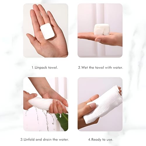 - ببساطة أضف قطرة من الماء لتوسيع المنشفة المضغوطة على الفور إلى مناديل وجه ناعمة كاملة الحجم - لا حاجة إلى نقع مسبق أو أدوات إضافية.