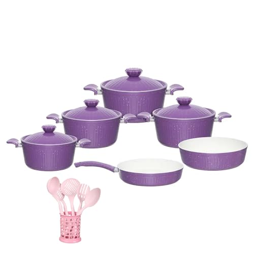 Ideal home - طقم حلل جرانيت تركي بمقابض عازلة من ايدل هوم، 15 قطعة متنوعة، أسود