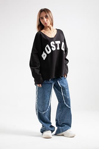 Generic - سويت شيرت بوسطن من ايليدي، اسود، مقاس L