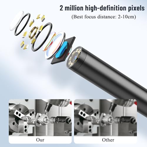 - كاميرا عالية الدقة: تم تجهيز هاتف الكاميرا بالمنظار هذا بمسبار 8 ملم، صغير الحجم وقابل للحمل. توفر لك 2 مليون بكسل عالية الدقة تجربة رائعة لمقاطع الفيديو والصور الواضحة عالية الدقة من مسافة قريبة.