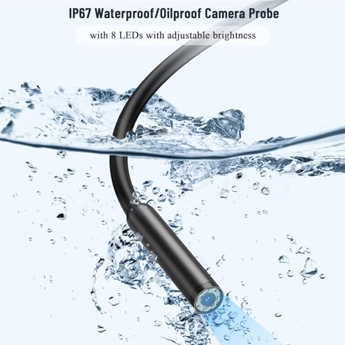 Guyisile - كاميرا منظار مضيئة، كاميرا منظار داخلي HD بتصنيف IP67 لمقاومة المياه والغبار، 8 مصابيح LED، كاميرا منظار مضادة للماء لاجهزة اندرويد واي او اس والتابلت