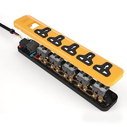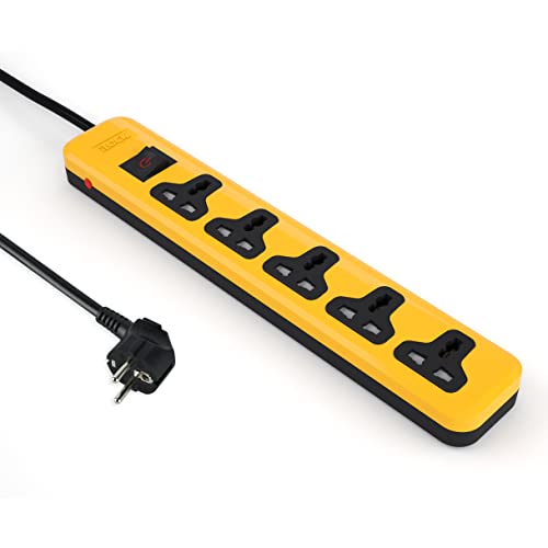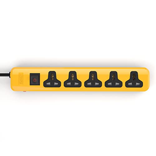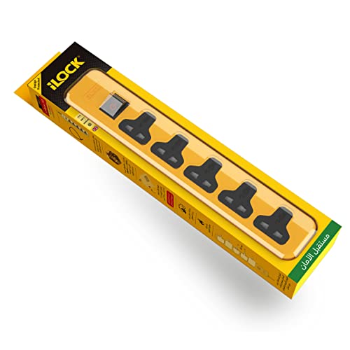 iLOCK - مشترك كهرباء يونيفرسال بـ 5 منافذ مع مفتاح التحميل الزائد من اي لوك (أصفر)