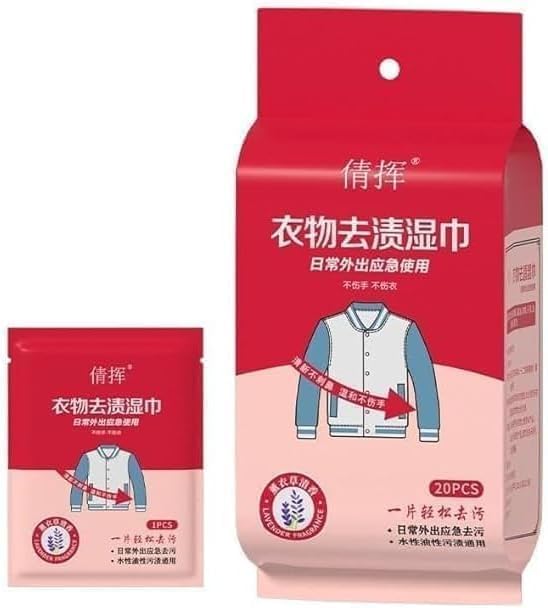 Generic - منتج مستورد للعناية بالملابس - مناديل مبللة تنظيف عميقة - للطوارئ والتنظيف اليومي - 20 منديل للحفاظ على النظافة
