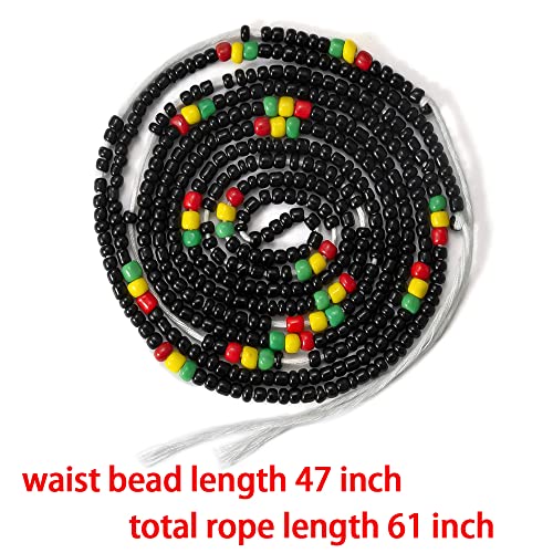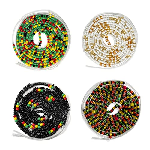 Impurain - خرز خصر برباط 47 انش للنساء لفقدان الوزن، خرز بطبقات ملونة للخصر، 4 قطع من خرز الخصر الافريقي مصنوع يدويا