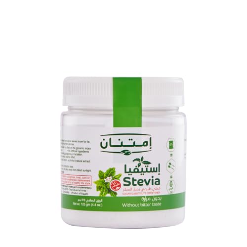 - بديل السكر الطبيعي من أوراق ستيفيا من إمتينان - بديل سكر طبيعي معروف بقدرته العالية على التحلية وخالي من السعرات الحرارية؛ مصنوع من مستخلص أوراق ستيفيا والإريثريتول (مستخلص طبيعي من حبوب الذرة) بدون مكونات صناعية ولا طعم مر