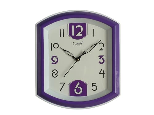 Generic - ساعة حائط تناظرية صناعة هندية ماكينة هندي موفرة للبطاريات ملف نحاسي كبير مع بطارية اصلية و مسمار و فيشر للتعليق لون بنفسجي ضمان 3 سنوات مقاس 33 في 29 سم