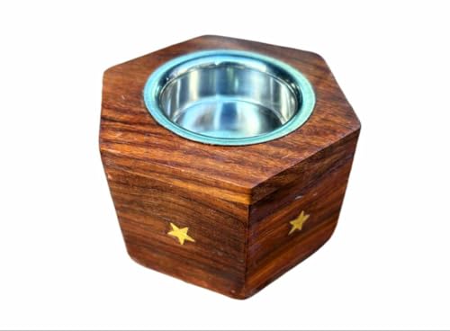 - مبخرة منقد هندي هاند ميد خشب شيشام شغل مطعم بالنحاس للبخور السايب مع الفحم سريع الاشتعال قطر ٨سم ارتفاع ٥سم