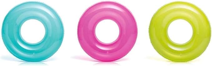 Generic - عوامة سباحة دائرية قابلة للنفخ، لون أزرق مائي ووردي وأخضر ليموني، عبوة من 1 قطعة