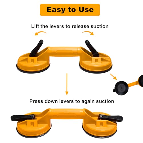 - 【استخدامات متعددة】: يمكن لرافعة قاعدة الشفط ذات المقبض المزدوج أن تلتصق بإحكام بأي سطح مستو نظيف غير مسامي، وهي أداة مثالية وأساسية لرفع وتحريك الزجاج والصفائح المعدنية والجرانيت والأثاث والأجهزة المنزلية وما إلى ذلك.