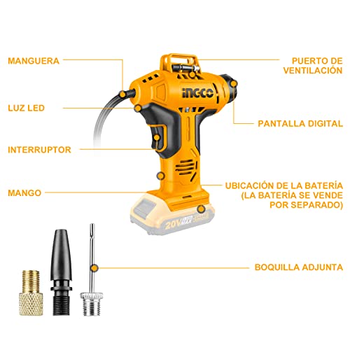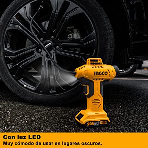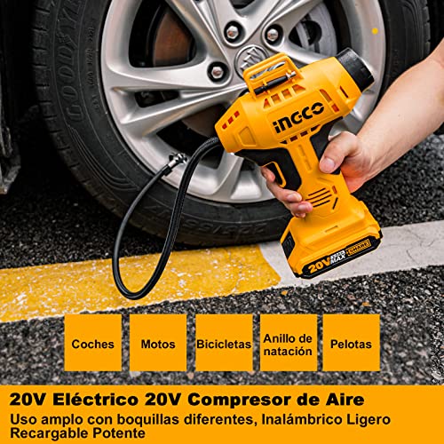 Ingco - ضاغط هواء لاسلكي ببطارية ليثيوم أيون 150 رطل لكل بوصة مربعة، 20 فولت موديل CACLI2001 من انجكو