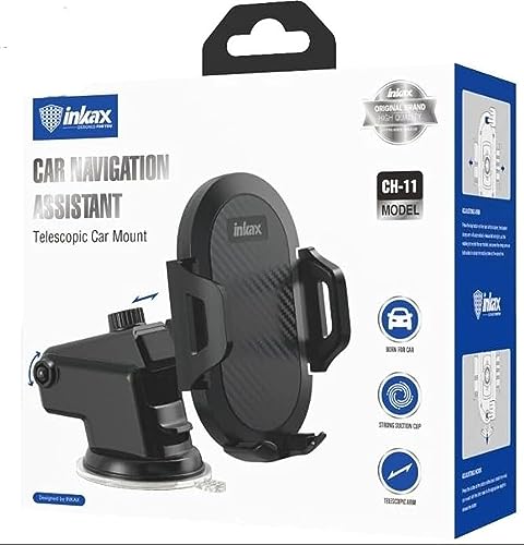 Inkax - حامل هاتف للسيارة من Inkax، مساعد سفر تلقائي، حامل سيارة تلسكوبي، ذراع تلسكوبي ch-11، أسود