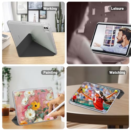 Palkitsee - جراب لجهاز اي باد برو 11 2024 (الجيل الخامس، M4) مع حامل قلم، حامل عمودي/أفقي قابل للتعديل، خاصية التشغيل/النوم التلقائي، يدعم قلم آبل برو/USB-C، أسود