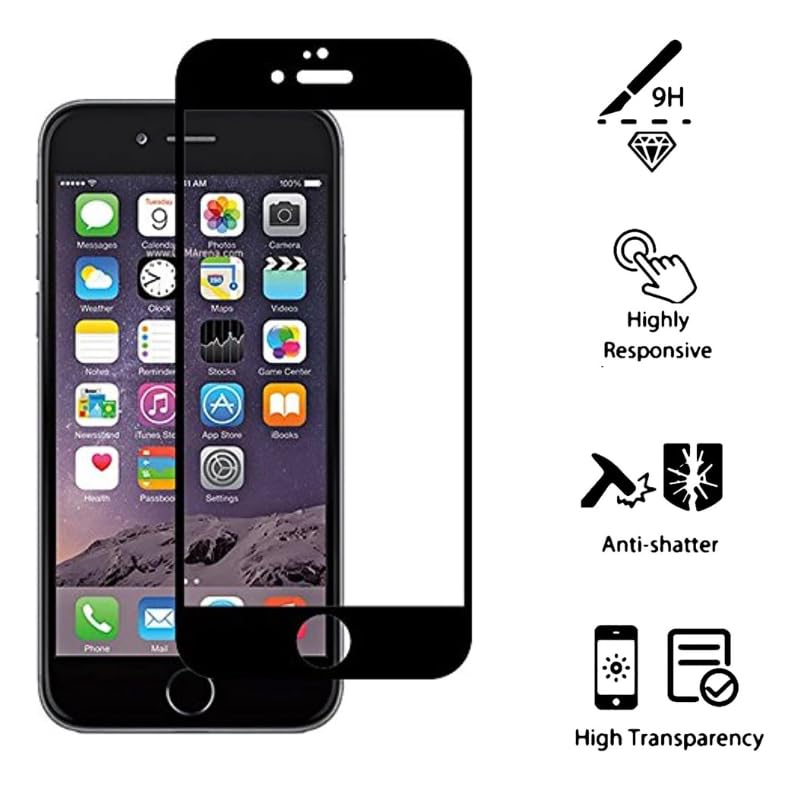 iPhone - شاشة حماية من الزجاج المقوى بدرجة إمالة 5 دي لموبايل آيفون 6s بلس - لون أسود