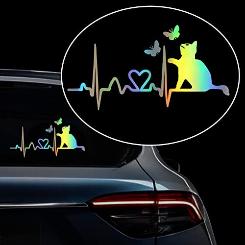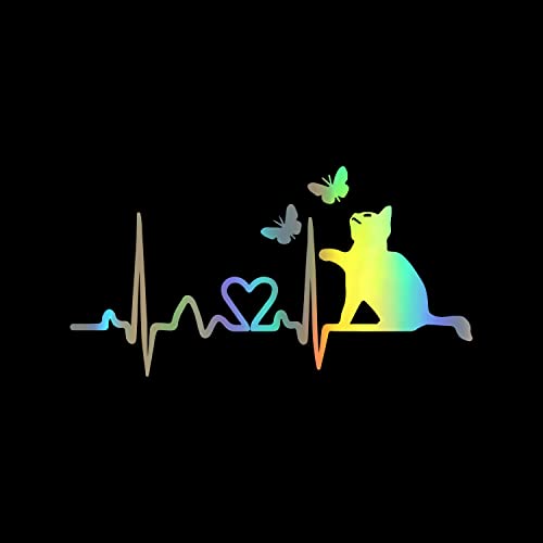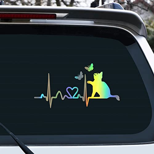 Iprokiu - ستيكر لاصق من الفينيل بتصميم نبض قلب وقطة وفراشة من ايبروكيو لجسم السيارة والنافذة وممتص الصدمات بتصميم حيوانات لطيفة للابتوب والشاحنة، ستيكر لاصق مضاد للماء لتزيين السيارة (لون مبهر)