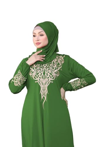 MISK - إسدال فيزون تطريز كم وصدر بطرحه منفصله نسائي مقاس موحد , اخضر