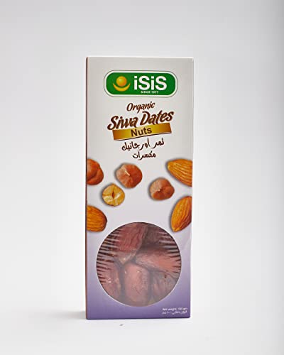 - يحتوي تمر سيوي اورجانيك من ايزيس مع المكسرات المحمصة بدون أي مواد كيميائية على الكثير من الألياف الغذائية الجيدة/المفيدة لصحتك. إنه يدعمنا بالطاقة ويحتوي على الكثير من الفيتامينات المهمة لجهازك العصبي. مفيد جدًا لصحة القلب