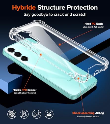 iVoler - جراب حماية شفاف ومقاوم للاصفرار لموبايل سامسونج جالاكسي A16 شبكة الجيل الرابع والخامس 4G/5G مزود بزوايا مقواة [مضاد للصدمات بدرجة حماية عسكرية] ممتص للصدمات ومضاد للخدش من اي فولير