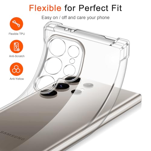 iVoler - جراب حماية رفيع وشفاف من السيليكون شفاف لموبايل سامسونج جالاكسي S24 الترا شبكة الجيل الخامس 5G مع زوايا واقية من البولي يوريثين الحراري مقاوم للخدش ومضادة للصدمات من اي فولر
