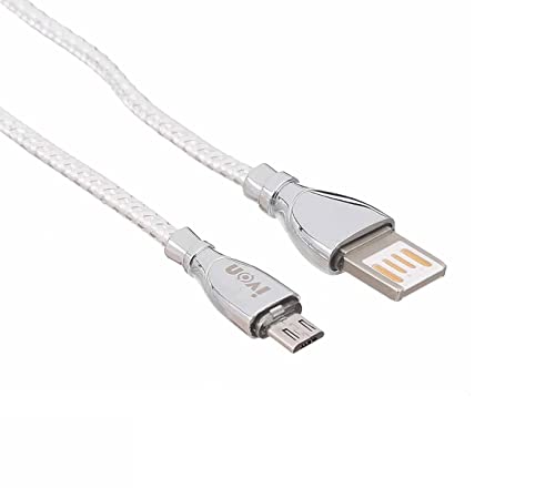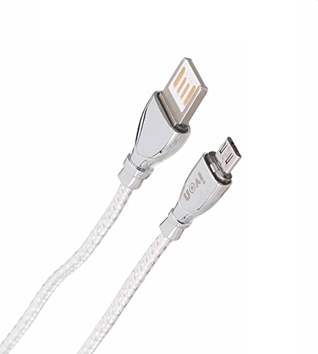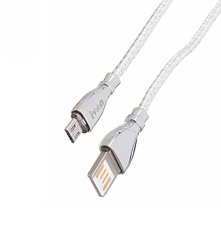 Ivon - كابل Micro USB للشحن السريع ونقل البيانات من ايفون، 1 متر، فضي، موديل kx2134