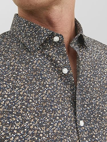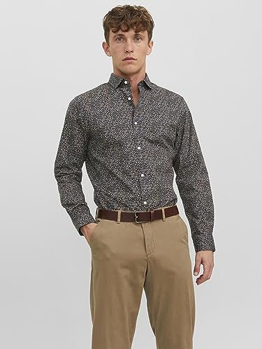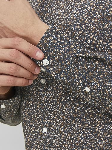 JACK & JONES - قميص بلاكبول غير رسمي بتصميم مرن بأكمام طويلة للرجال من جاك اند جونز