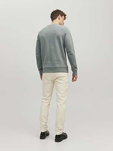 JACK & JONES - سترة بولوفر من جاك آند جونز برقبة دائرية للرجال، تصميم ضيق بأكمام طويلة، مصنوعة من القطن والبوليستر، لون سادة، مقاس كبير