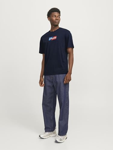JACK & JONES - تيشرت جيه جيه اي كورب عصري بأكمام قصيرة ورقبة دائرية ومزين بشعار العلامة التجارية بنمط جرافيك للرجال من جاك اند جونز (عبوة من 1)