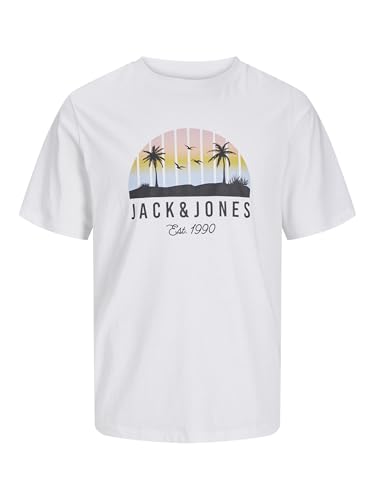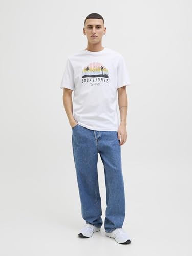 JACK & JONES - تيشرت عصري بتصميم نخيل بأكمام قصيرة ورقبة دائرية بدون طوق للرجال من جاك اند جونز (قطعة واحدة)