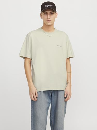 JACK & JONES - تي شيرت جورسليت للرجال باكمام قصيرة ورقبة دائرية بدون طوق عصري