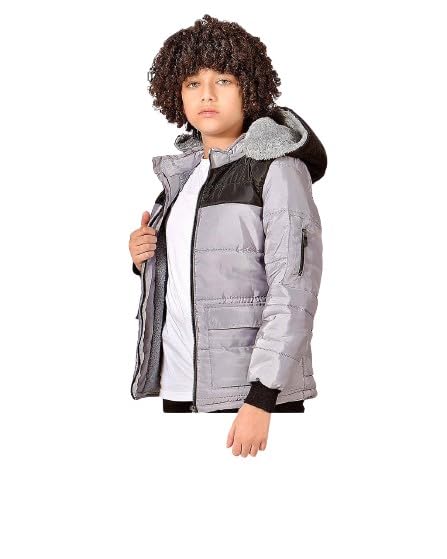 Generic - جاكيت اولادي رصاصي بسوسته وجيبان من الامام