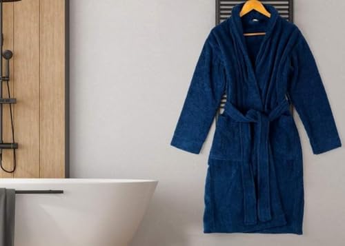 Jacquarddina - روب استحمام مصري من القطن 100% من نسيج سريع الجفاف ومريح للاستخدام المنزلي والسبا من جاكاردينا، أزرق كحلي (رويال نيفي)