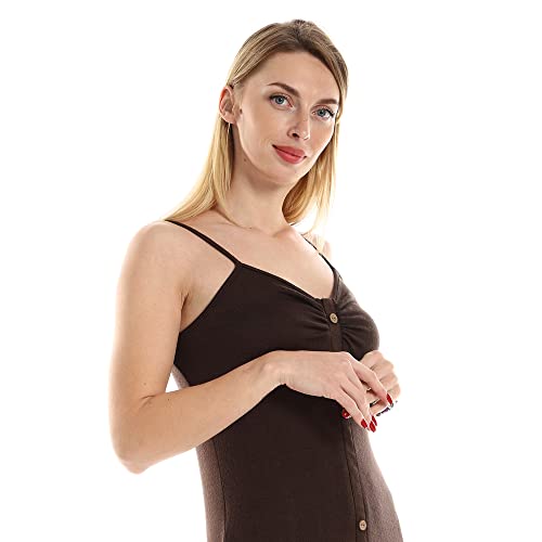 JAMILA - فستان كاجوال بدون أكمام بحمالات رفيعة وحياكة مع ومزين بأزرار للنساء من جميلة