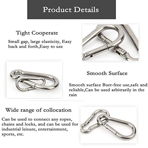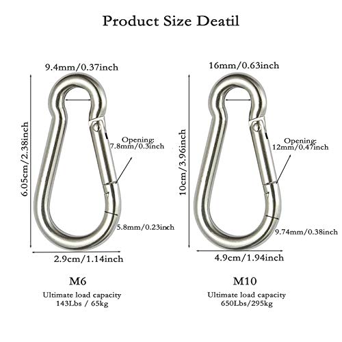 JAZZEEL - مجموعة حلقات تعليق بخطاف زنبركي M6 وM10 من جازيل، مشابك من الستانلس ستيل 304، وصلة سريعة شديدة التحمل للرياضة الخارجية وصيد الاسماك والمشي لمسافات طويلة والسفر وتنظيم سلسلة المفاتيح المنزلية