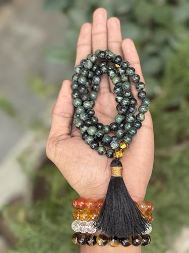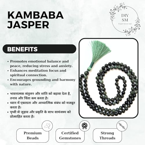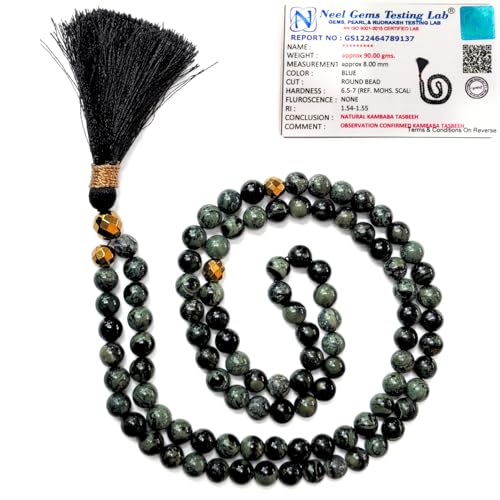 JAZZEEL - سبحة احجار كريمة كامبابا مع 100 خرزة مقاس 8 ملم من جازيل، سبحة كريستال للصلاة والتامل والشفاء الروحي، هدية للمسلمين للرجال والنساء