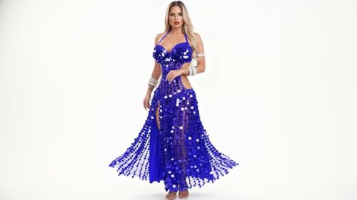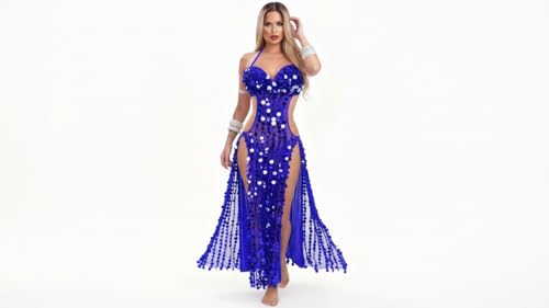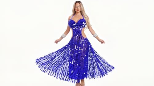 JAZZEEL - فستان جلابية برباط مزين بالترتر من جازيل، قماش شبكي قابل للتمدد مع جوانب مفرغة وألواح ترتر متدفقة، ملابس منزلية للحفلات للنساء، تصميم انيق للمناسبات والعروض