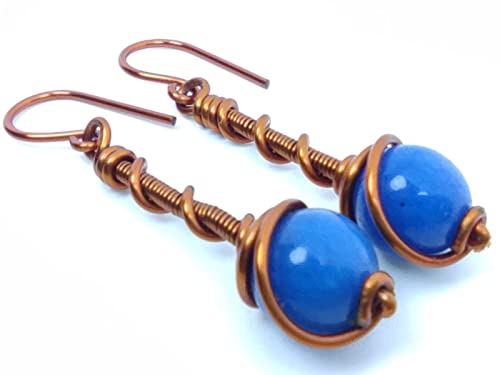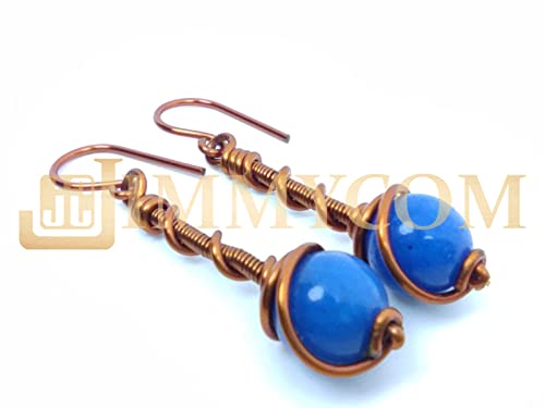 (JC) jimmycom - طقم حلقان متدلية قصيرة من النحاس والاحجار للنساء مجموعة فريدة الاكسسوارات نحاس مطلية عقيق برازيلي ازرق one size جاي سي جيميكوم
