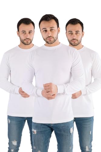 Jet (JET ) - 3 قطع تي شيرت داخلي رجالي كم طويل رقبة روند من جيت - أبيض