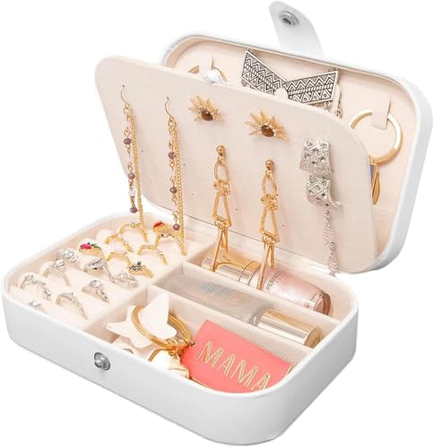 Generic - صندوق مجوهرات واكسسوارات - شنطة سفر جلدية محمولة متعددة الطبقات - مقاس M، أبيض