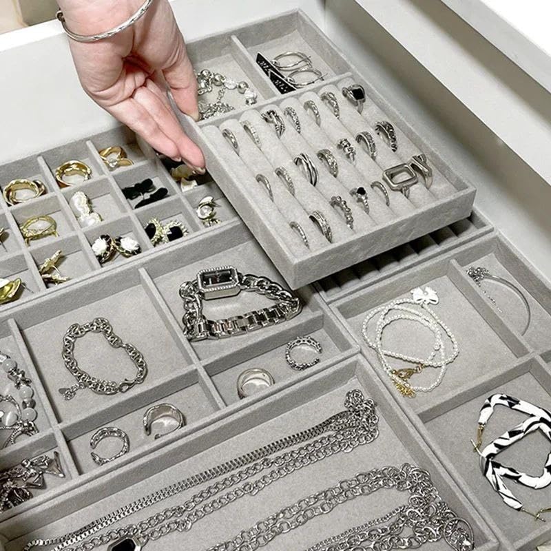 - ✅ مجموعة من 4 قطع يمكنها حمل عشرات المجوهرات ✅ تصميم فواصل داخلية قابلة للإزالة ✅ مقاس كل صينية: 9.4 (طول) × 5.9 (عرض) × 1.1 (ارتفاع) انش؛ ستوضع منظمات صينية المجوهرات هذه ذات المقاسات المناسبة بشكل مثالي في درج خزانة الملابس، مما يحمي مجوهراتك من الخدوش والأضرار الأخرى