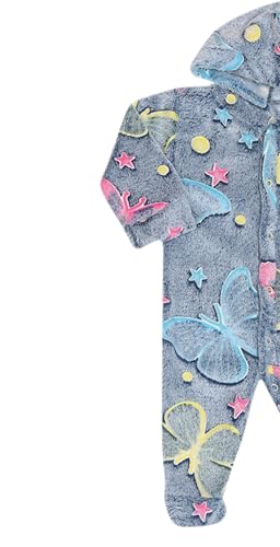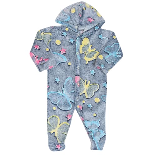 Jockey M M - سالوبيت بكباسين بولار بغطاء للرأس واكمام طويلة مطبوع عليه فراشات للجنسين من جوكي ام ام - متعدد الالوان، 0-3 شهور