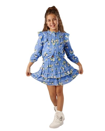 JodiMini - طقم تنورة قصيرة مكشكشة للبنات من جودي ميني، أزرق