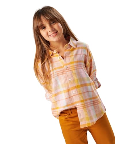 JodiMini - قميص كتان بنقشة كاروهات للجنسين من جودي ميني، برتقالي