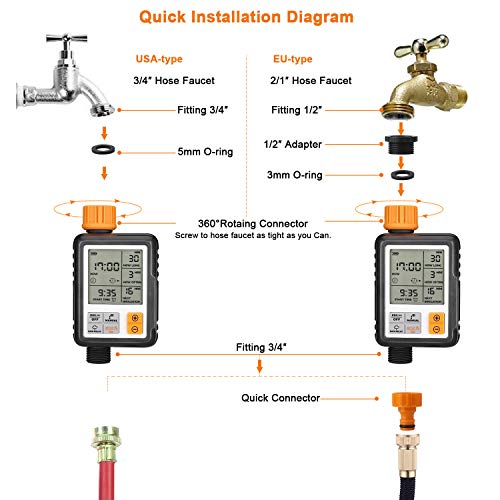 - ④ مقاومة للماء: مقاوم للماء، تم اختباره بضغط ماء يصل إلى 10 كجم، المؤقت الخارجي للرشاش مصنوع من مادة مقاومة للماء مصنوعة من بلاستيك ABS + بولي كربونات.