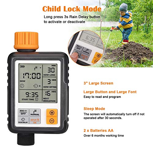 johgee - عداد ري تلقائي للحديقة من جوهجي، عداد ري خارجي، عداد رش مع شاشة إل سي دي كبيرة