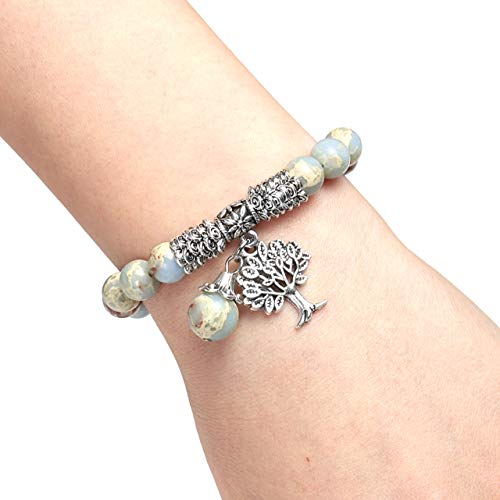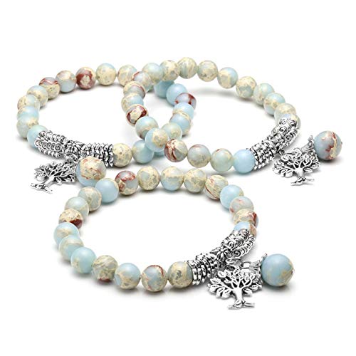 Jovivi - سوار خرز الطاقة شاكرا الطبيعي مرن مع دلاية شجرة الحياة من جوفيفي، 8 ملم, 65 pouces, حجر، للنساء، بنات، للبالغين من الجنسين.